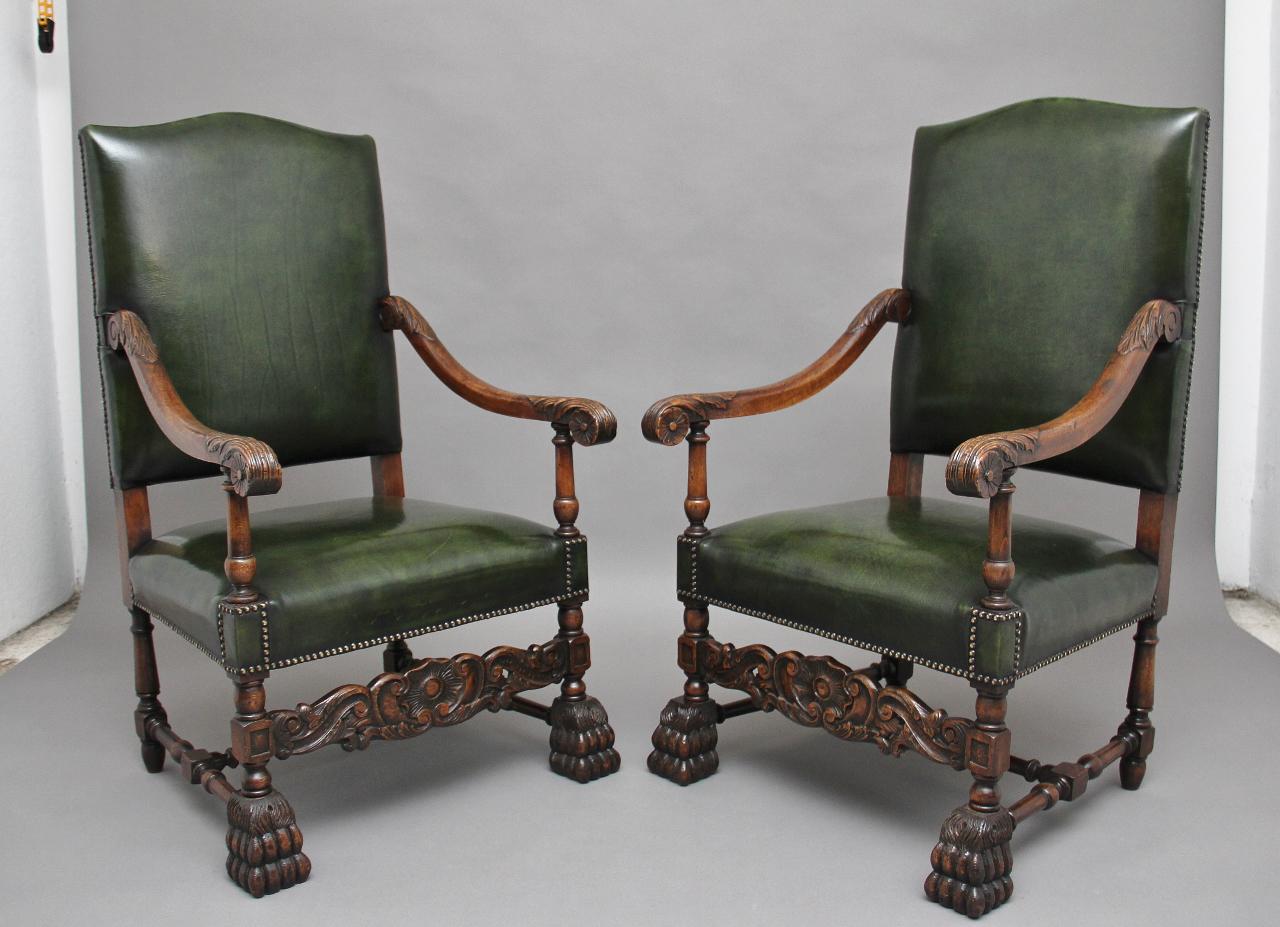 Pair of Early 20th Century Carved Armchairs in the Carolean Style (1 of 13)