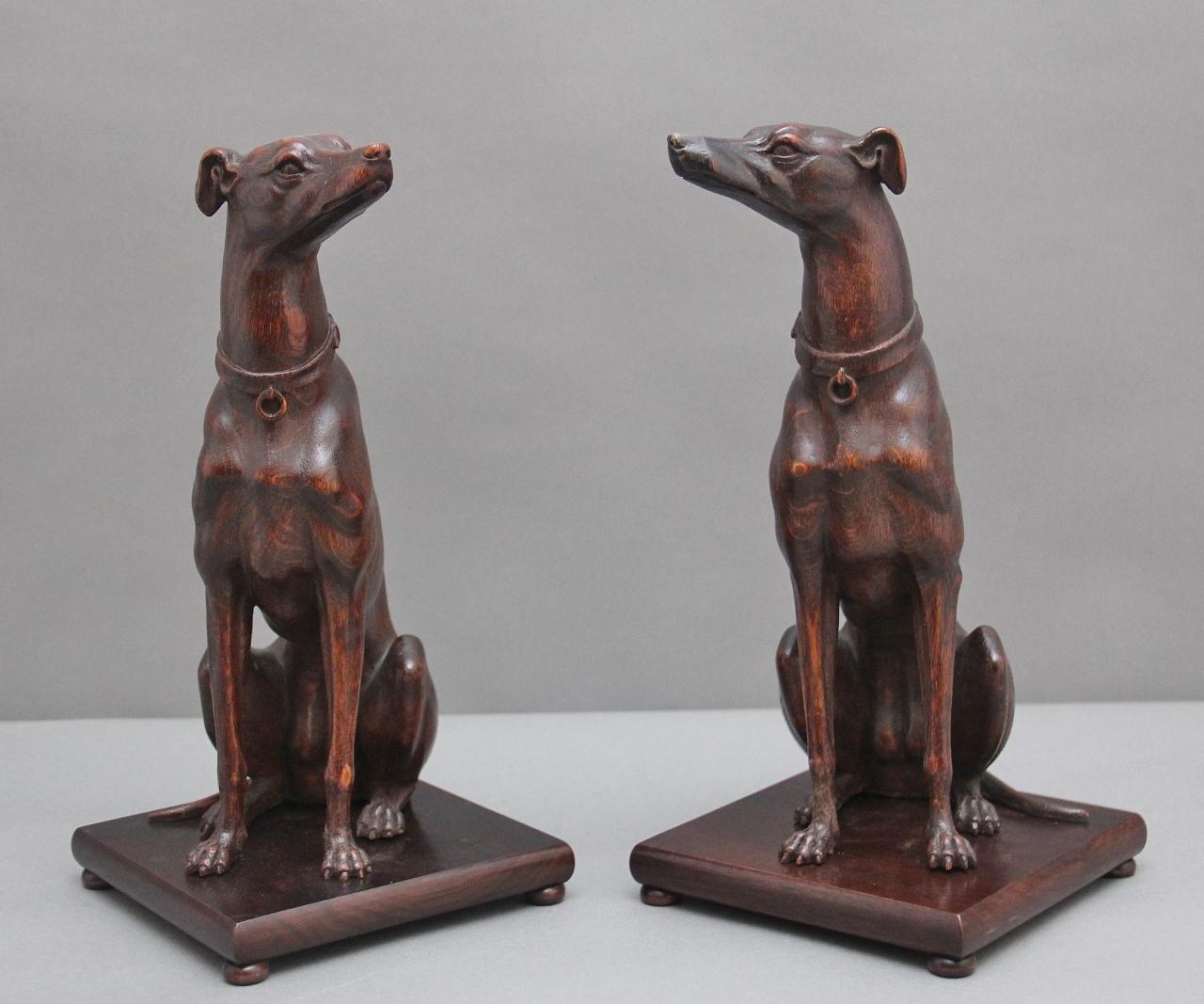 Pair of Early 20th Century Carved Oak Greyhounds (1 of 15)