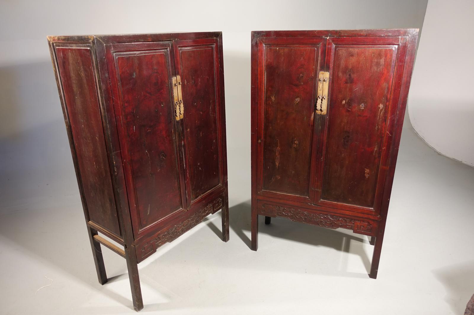 Pair of Early 20th Century Chinese Elm Wedding Cabinets
