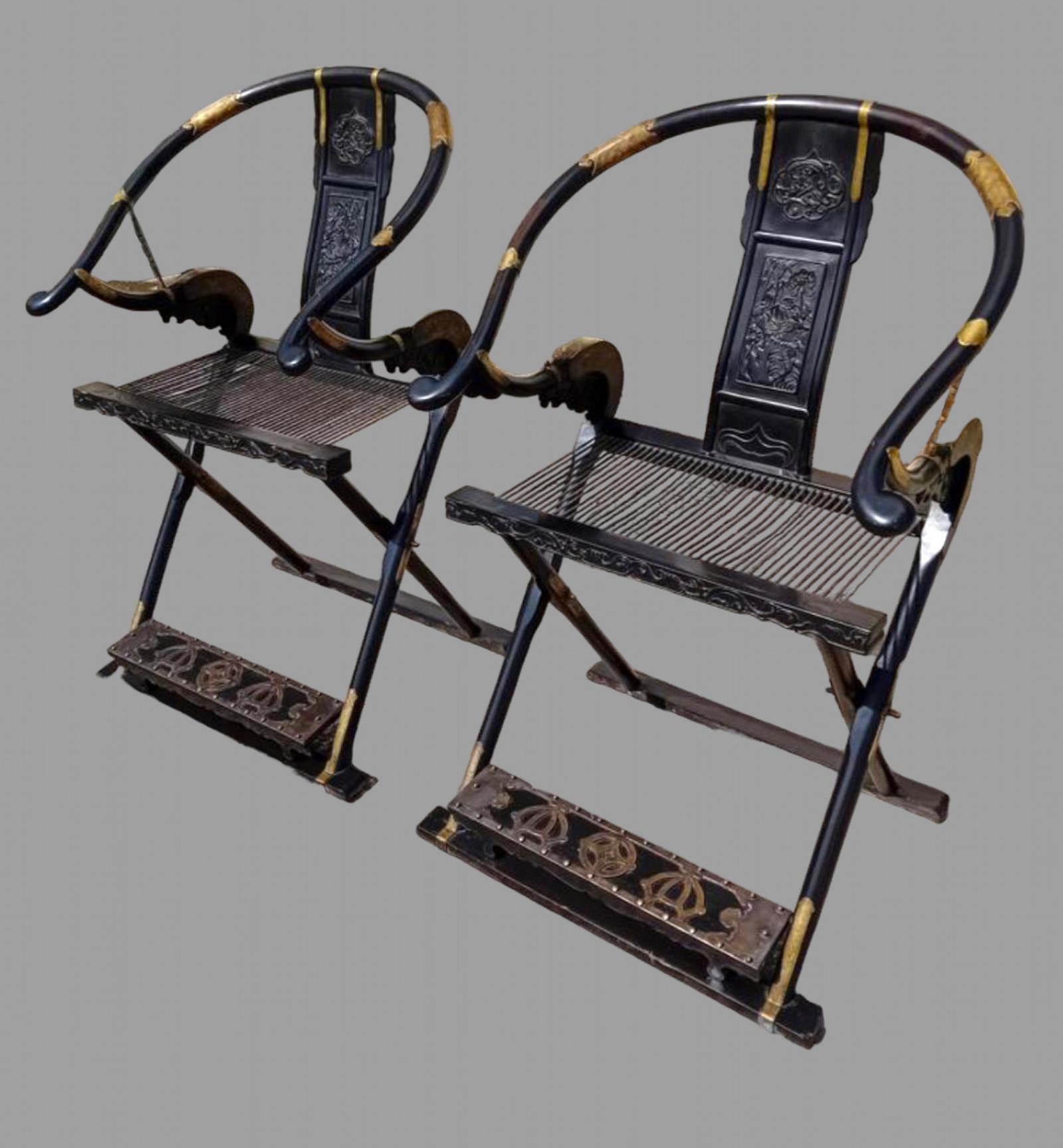 Pair of Early 20th Century Chinese Folding Mandarin Chairs