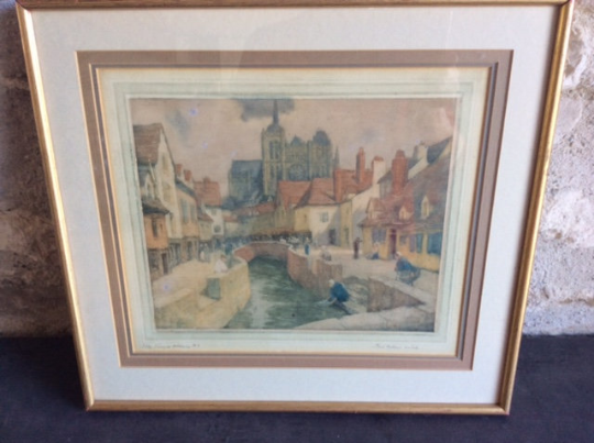 Pair of Early 20th Century Etchings of Belgian. French Town Scenes by Fred Milton after Terrick Williams Ri Signed Fred Milton