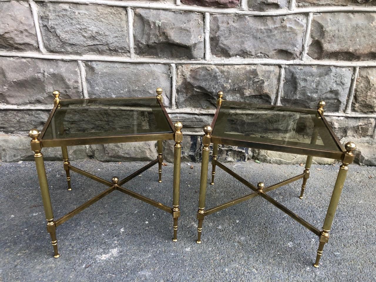 Pair of Early 20th Century Gilt Brass & Glass Side Tables