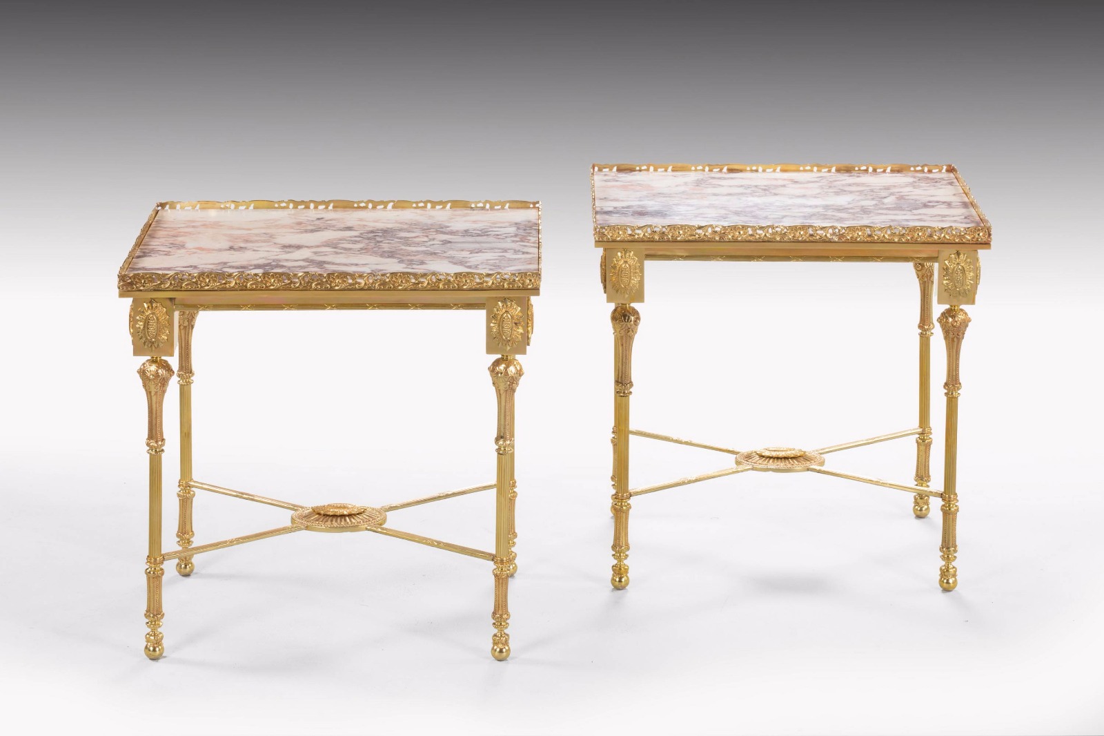 Pair of Early 20th Century Gilt Metal and Marble Low Side Tables