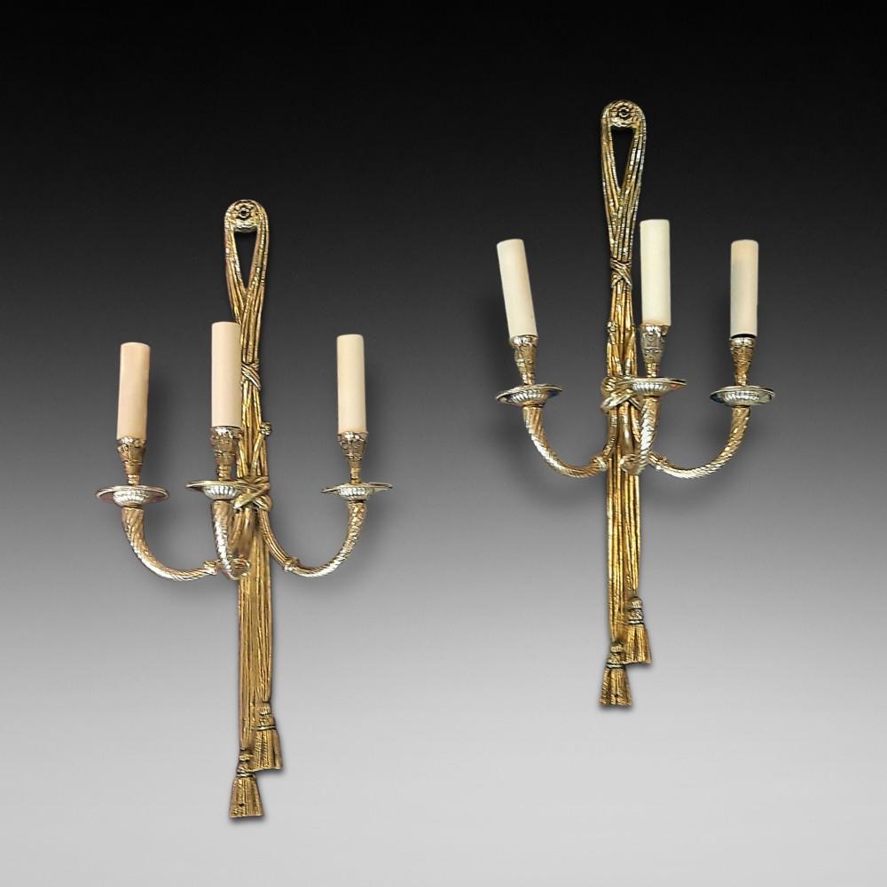 Pair of Early 20th Century Gilt Metal Three Branch Wall Light Fittings