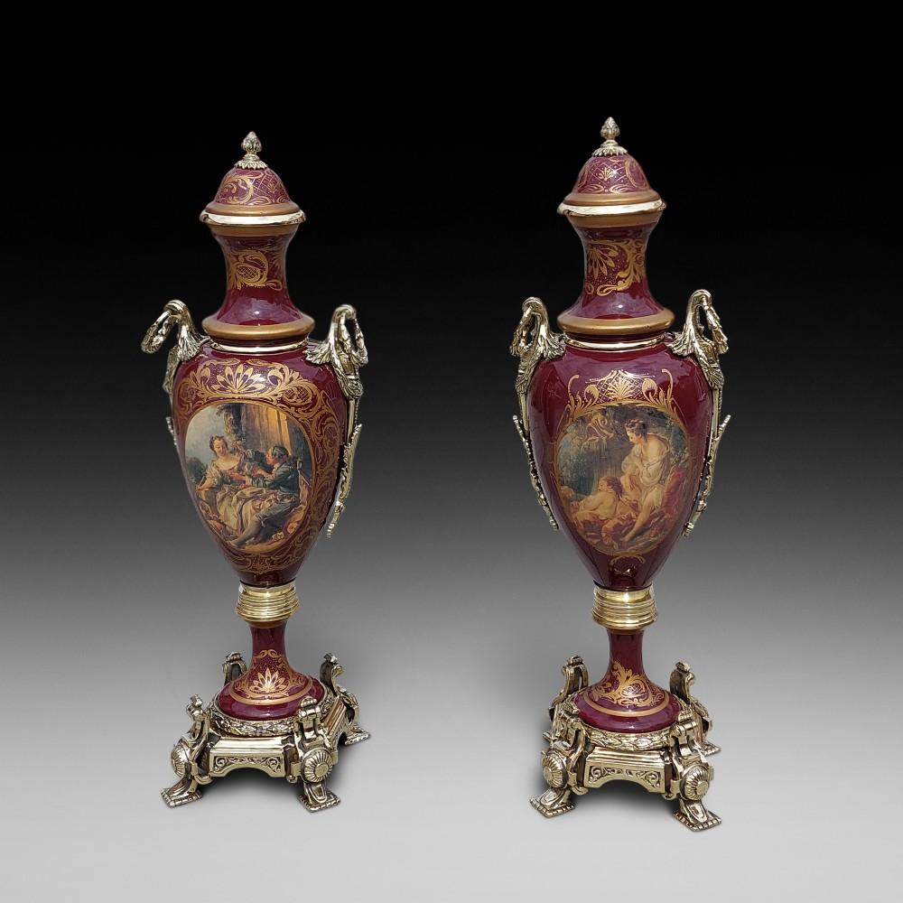 Pair of Early 20th Century Limoges Urn Vases (1 of 5)