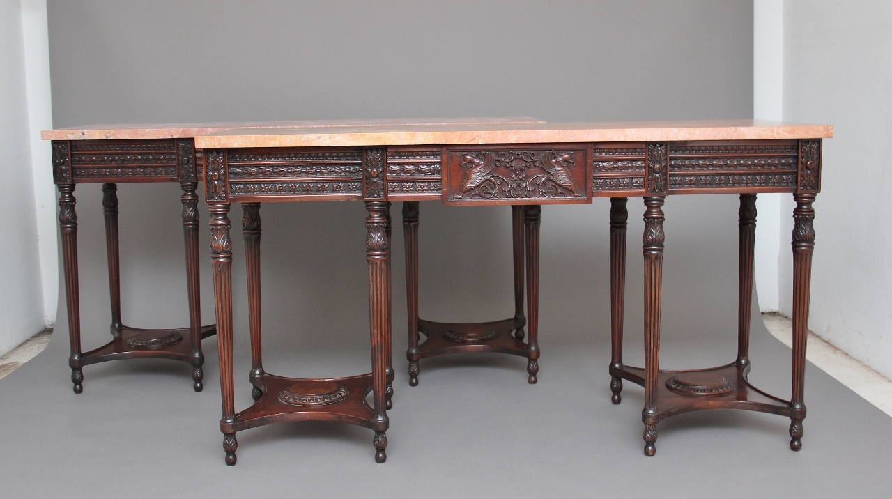 Pair of Early 20th Century Mahogany & Marble Top Console Tables