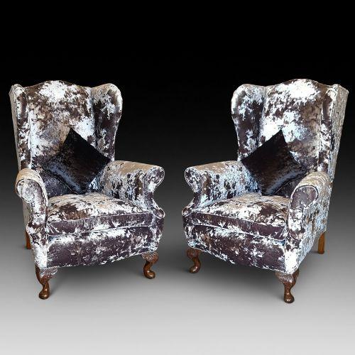Pair of Early 20th Century Oak Framed Wing Back Armchairs (1 of 6)