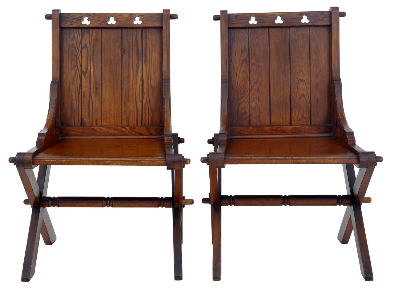 Pair of Early 20th Century Pitch Pine Glastonbury Chairs