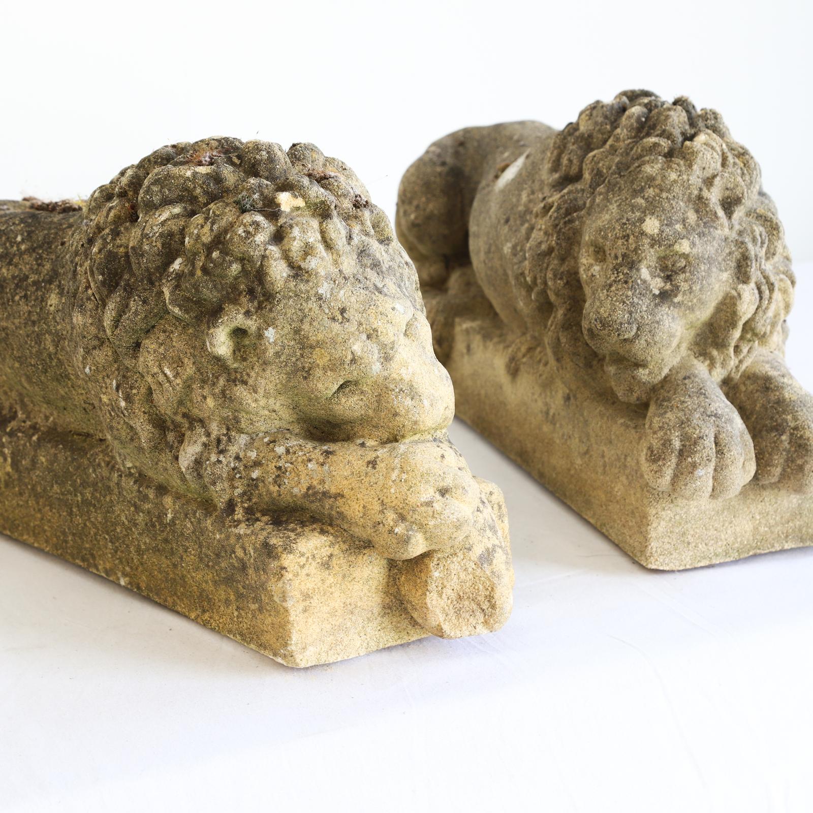 Pair of Early 20th Century Recumbent Stone Lions in the Style of Antonio Canova (1 of 10)