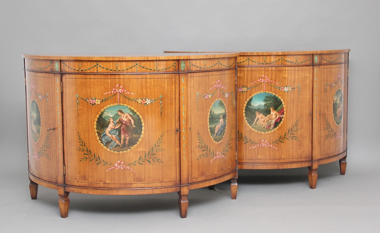 Pair of Early 20th Century Satinwood & Painted Cabinets