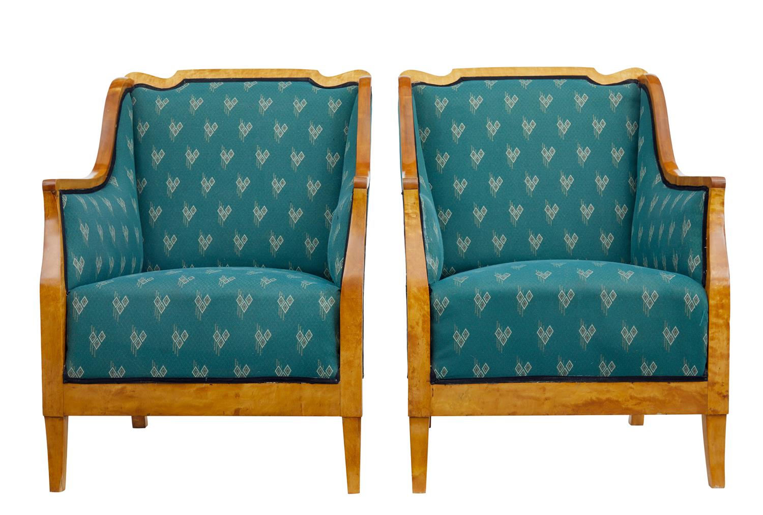 Pair of Early 20th Century Shaped Birch Armchairs