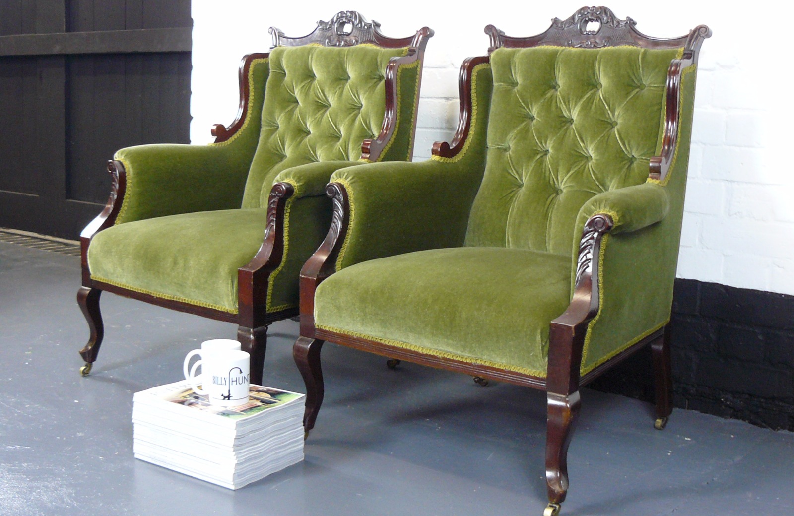 Pair of Early Edwardian Armchairs Re-upholstered in Sage Green (1 of 1)