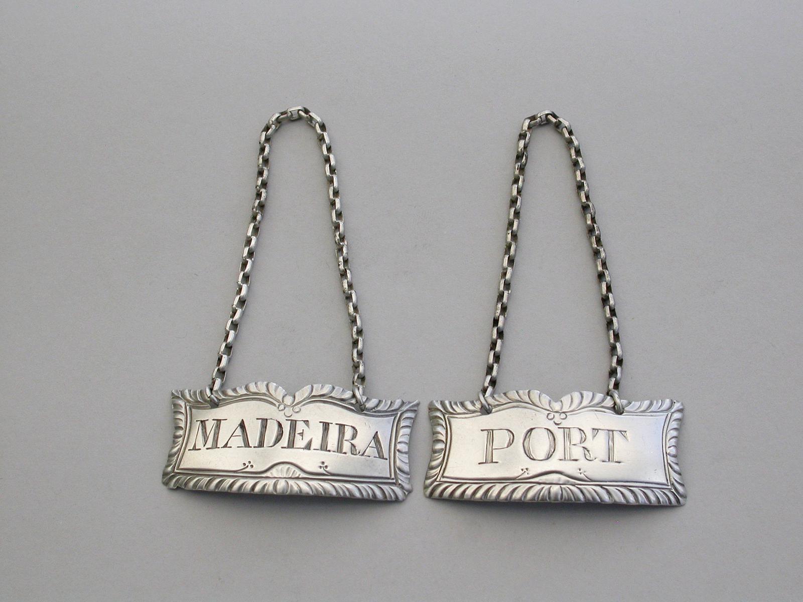 Pair of Early George III Silver Cushion Shaped Wine Labels 'Madeira & Port'