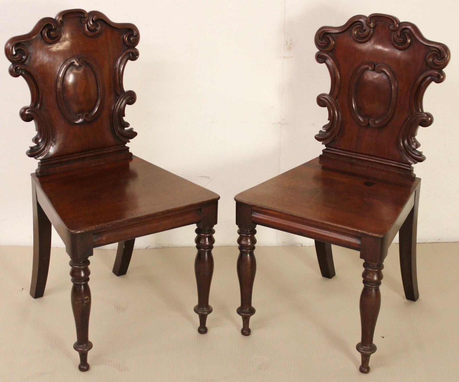 Pair of Early Victorian Mahogany Hall Chairs (1 of 1)