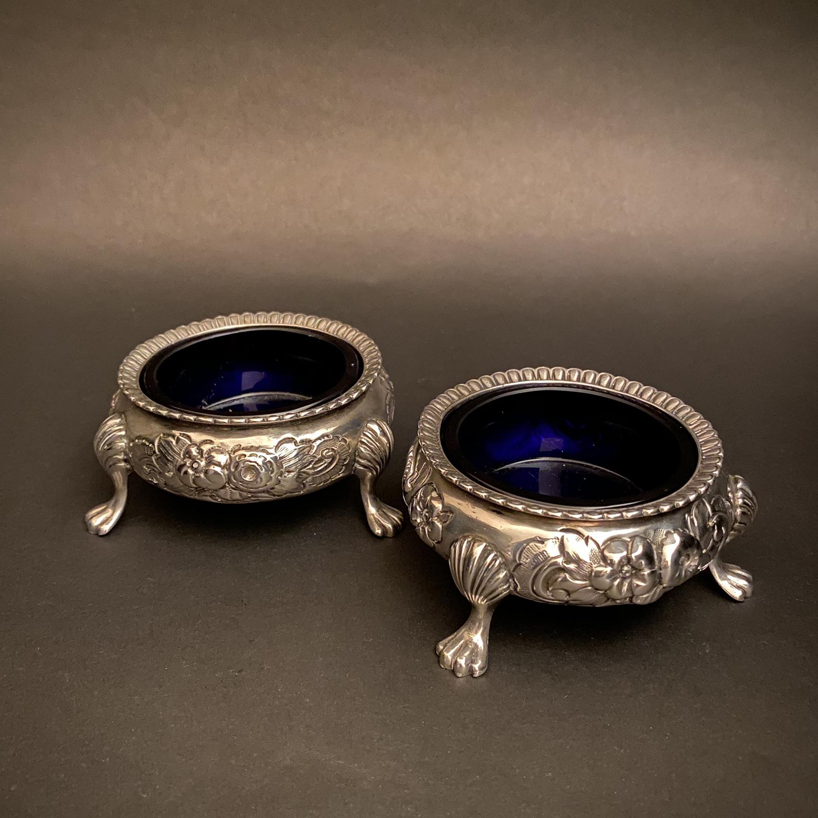 Pair of Early Victorian Robert Hennell Repousse Silver Salts