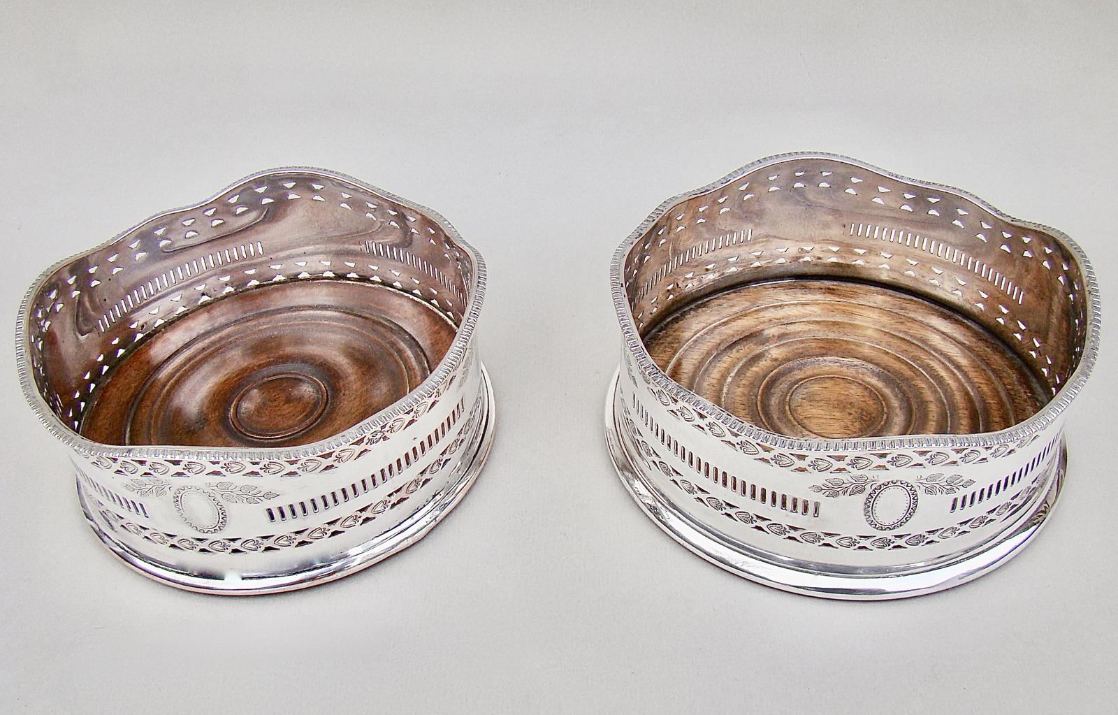 Pair of Early Victorian Silver Plated Wine Coasters c.1840