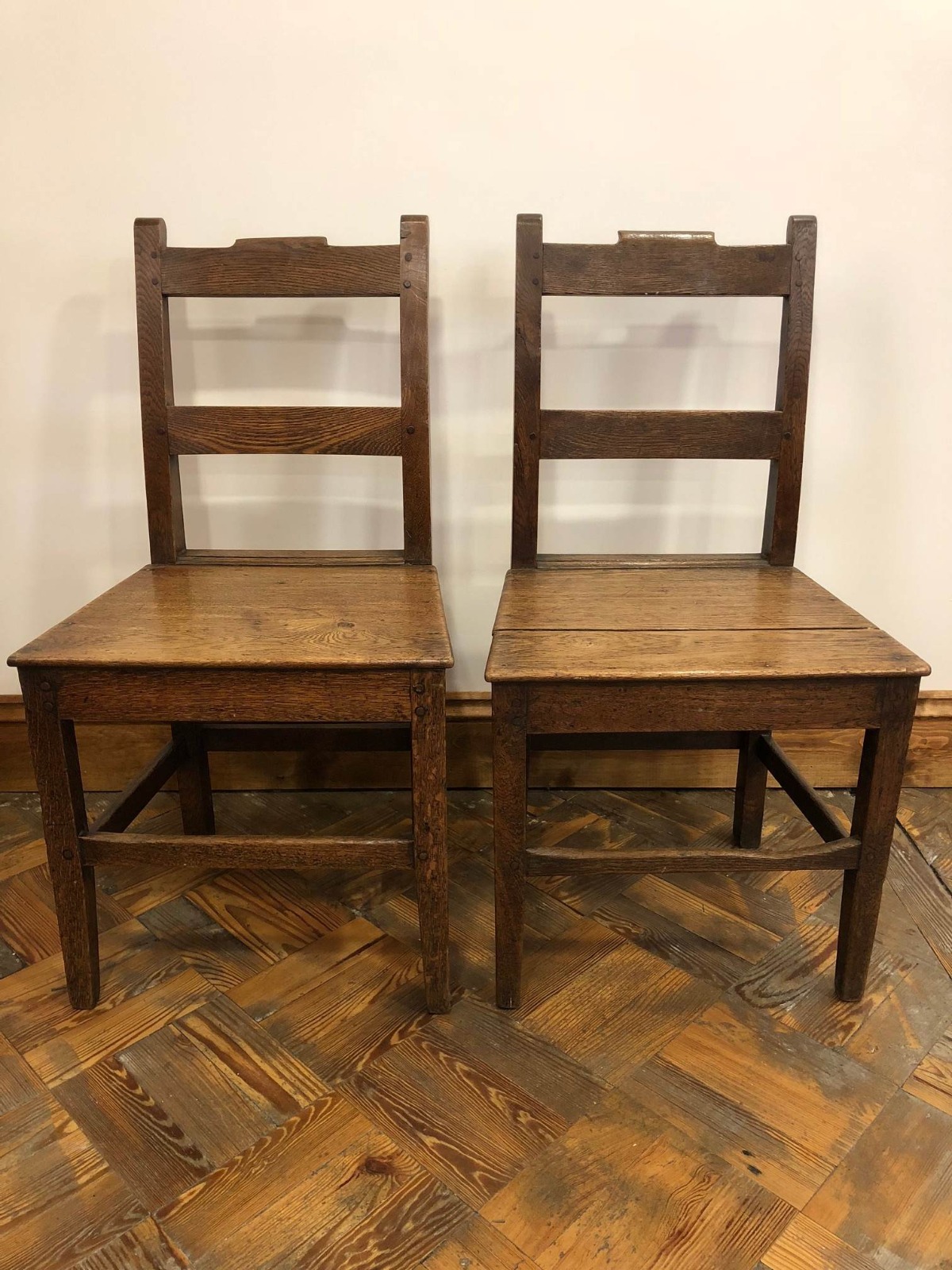 Pair of Early Welsh Oak Farmhouse Chairs with Shaped Top Rail (1 of 1)
