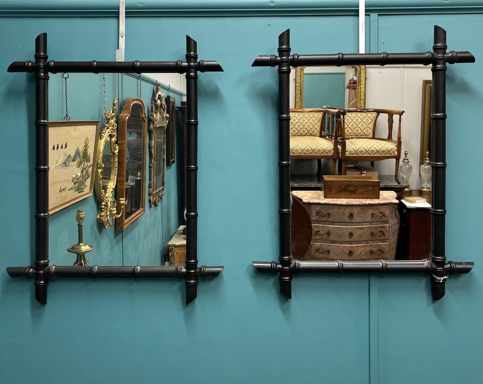 Pair of Ebonised Faux Bamboo Mirrors (1 of 6)