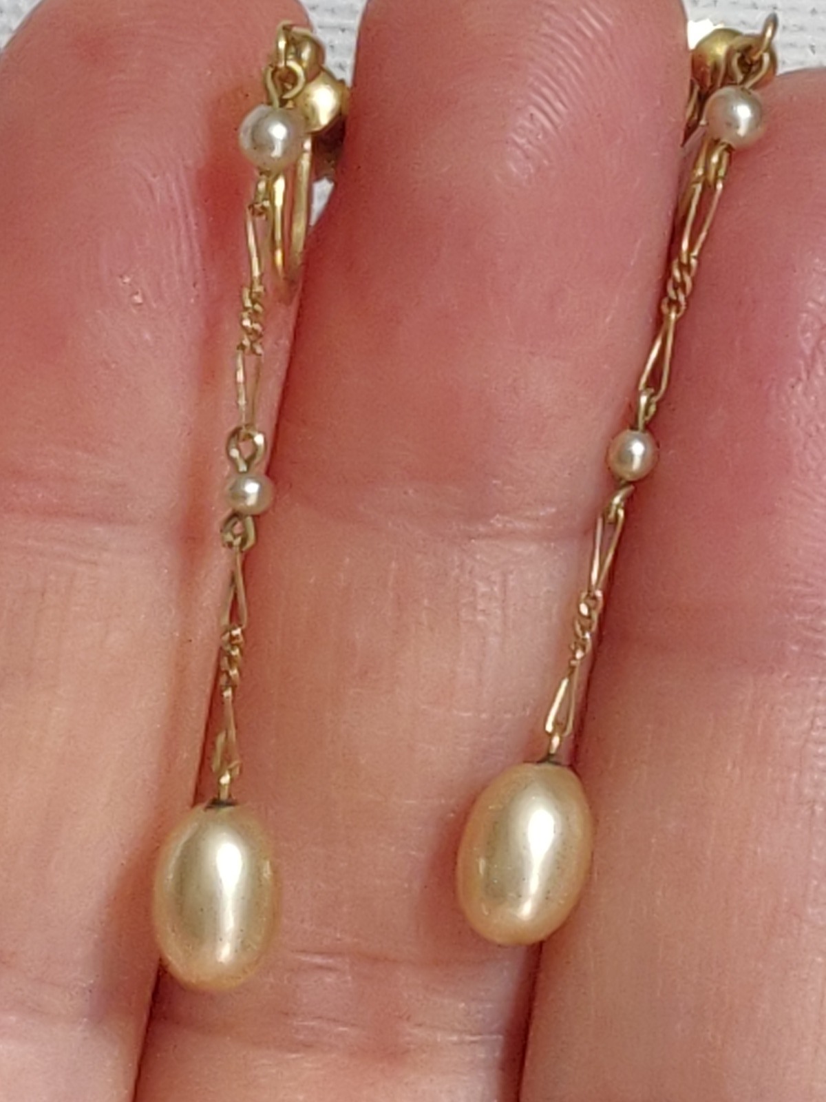 Pair of Edwardian 9ct Gold Dangling Screw Earrings with Faux Pearls