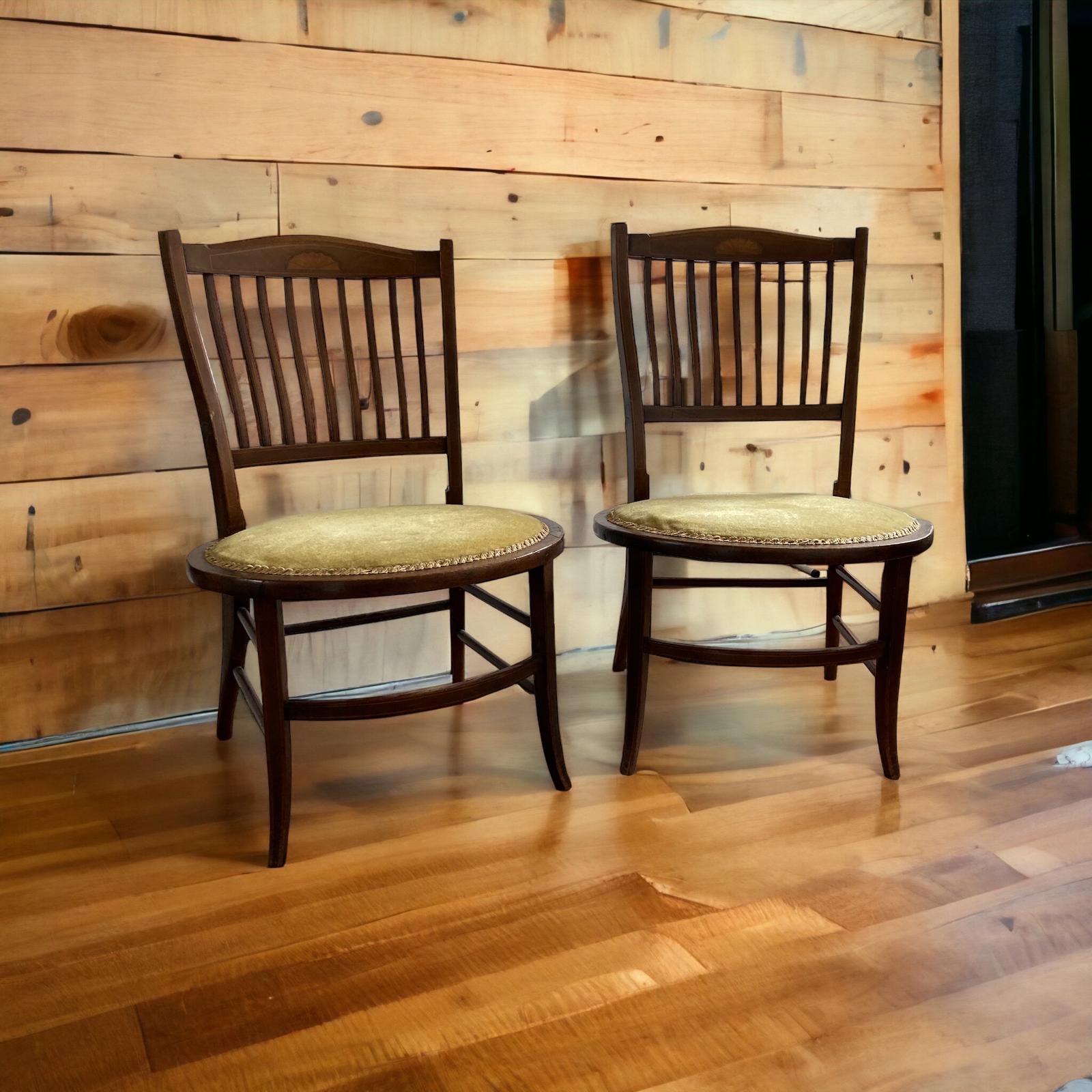 Pair of Edwardian Antique Mahogany Oval Based Hall Chairs