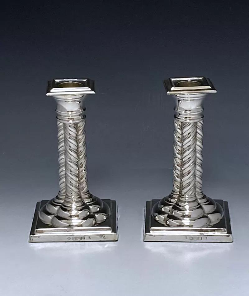 Pair of Edwardian Antique Silver Candlesticks Made in 1904