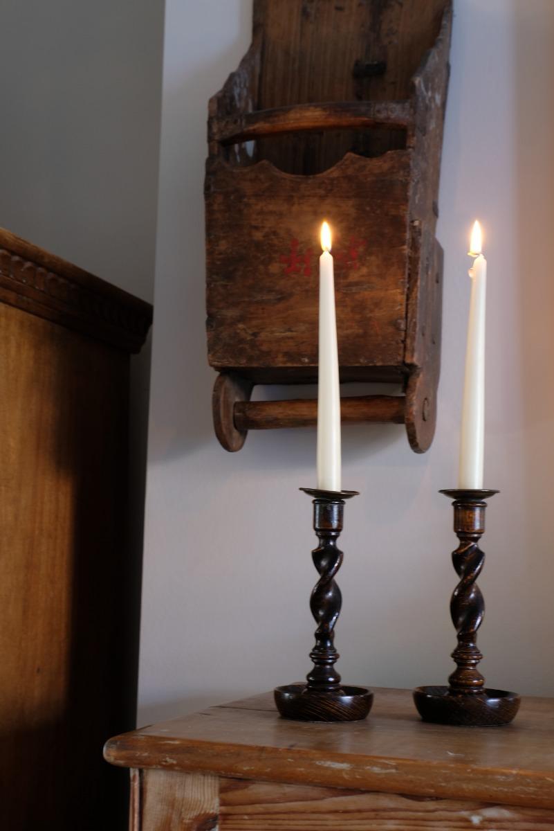 Pair of Edwardian Barley Twist Candle Holders in Oak