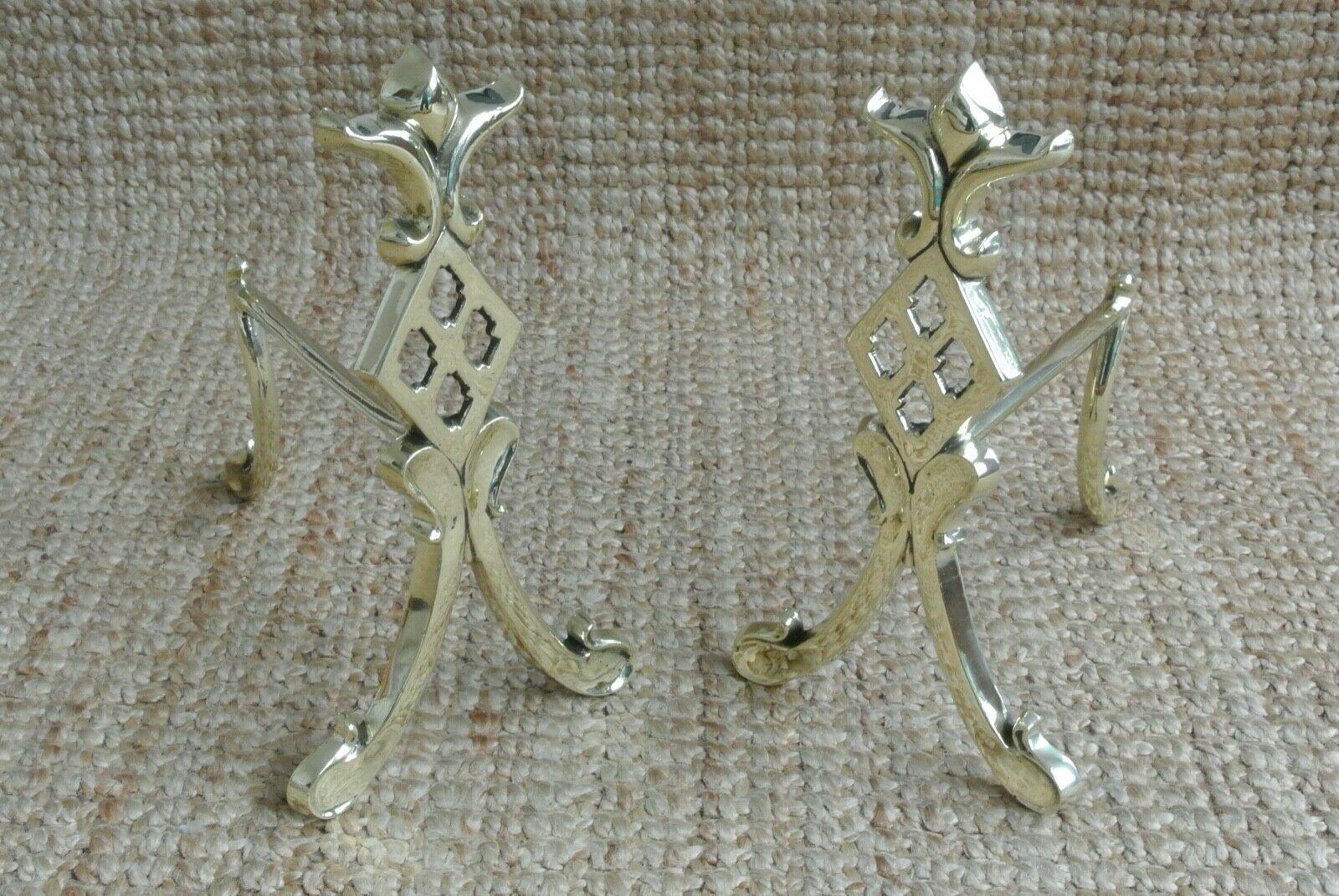 Pair of Edwardian Brass Fire-dogs Fire Irons Rest Andirons c.1905