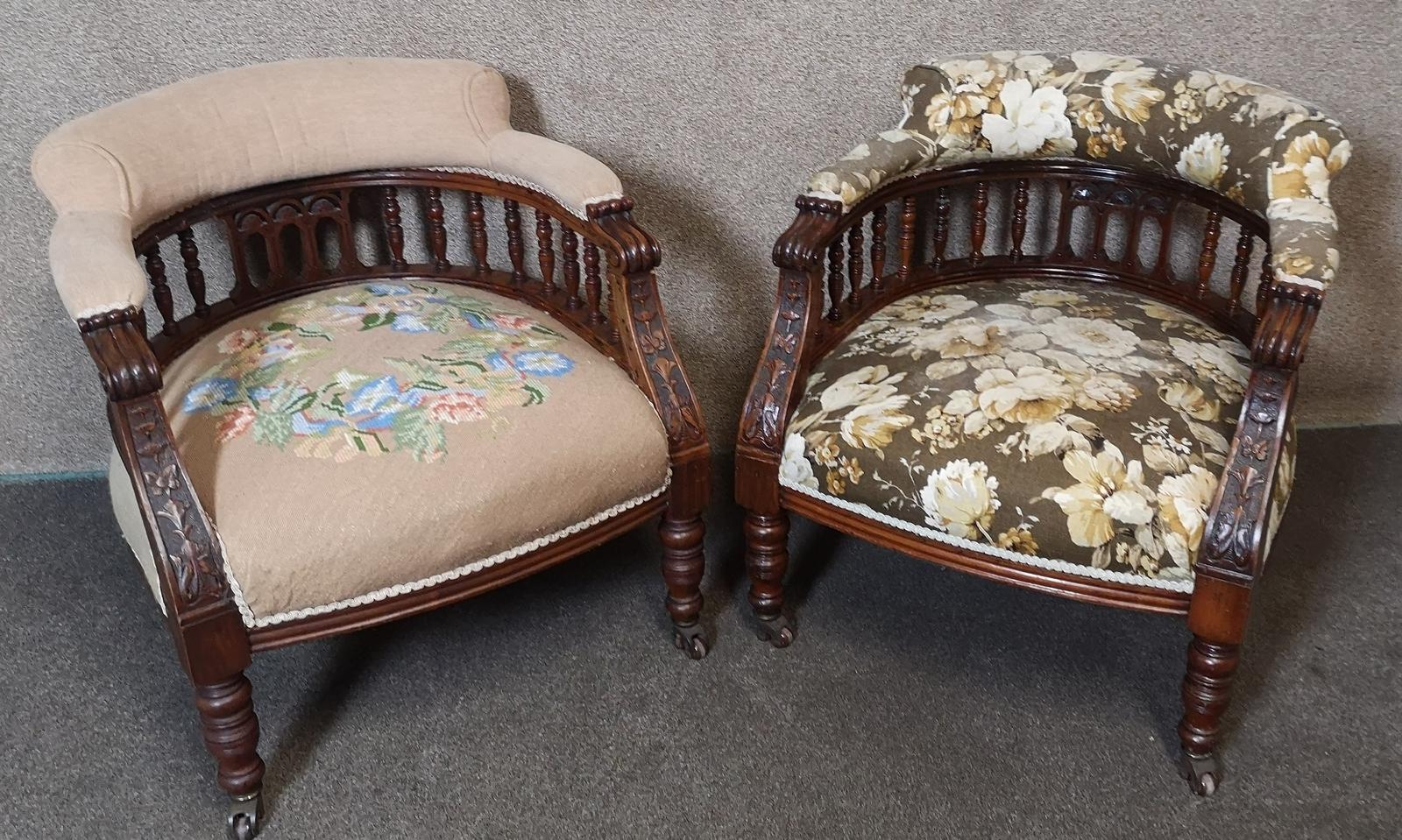 Pair of Edwardian Carved Walnut Tub Chairs (1 of 11)