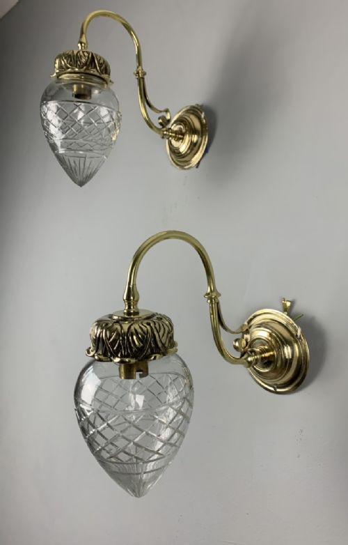 Pair of Edwardian Cut Glass Brass Wall Lights, Rewired