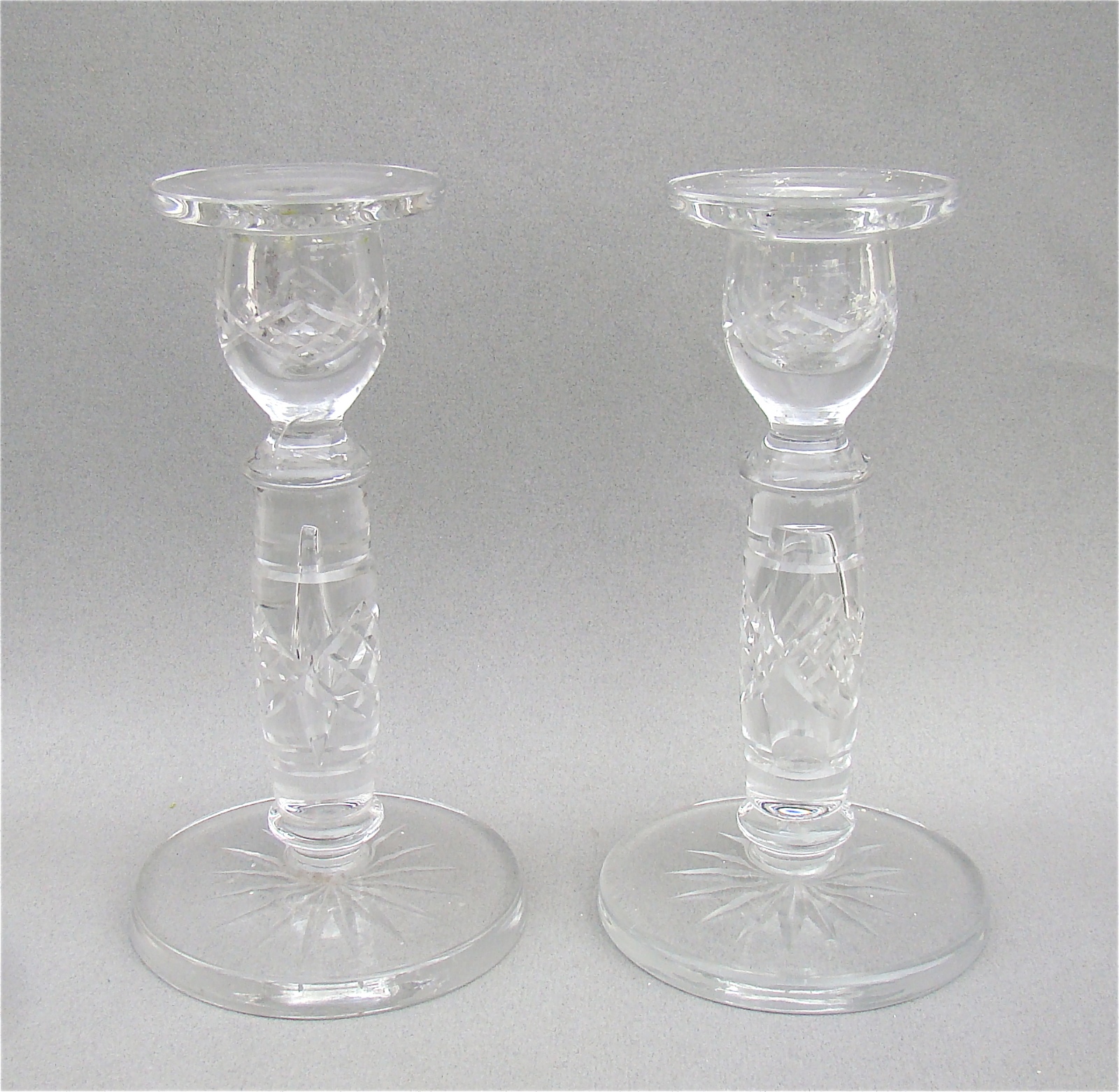 Pair of Edwardian Cut Glass Candlesticks c.1910