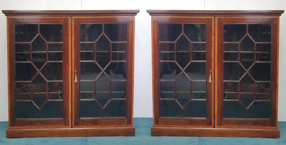 Pair of Edwardian Inlaid Mahogany Floor Bookcases