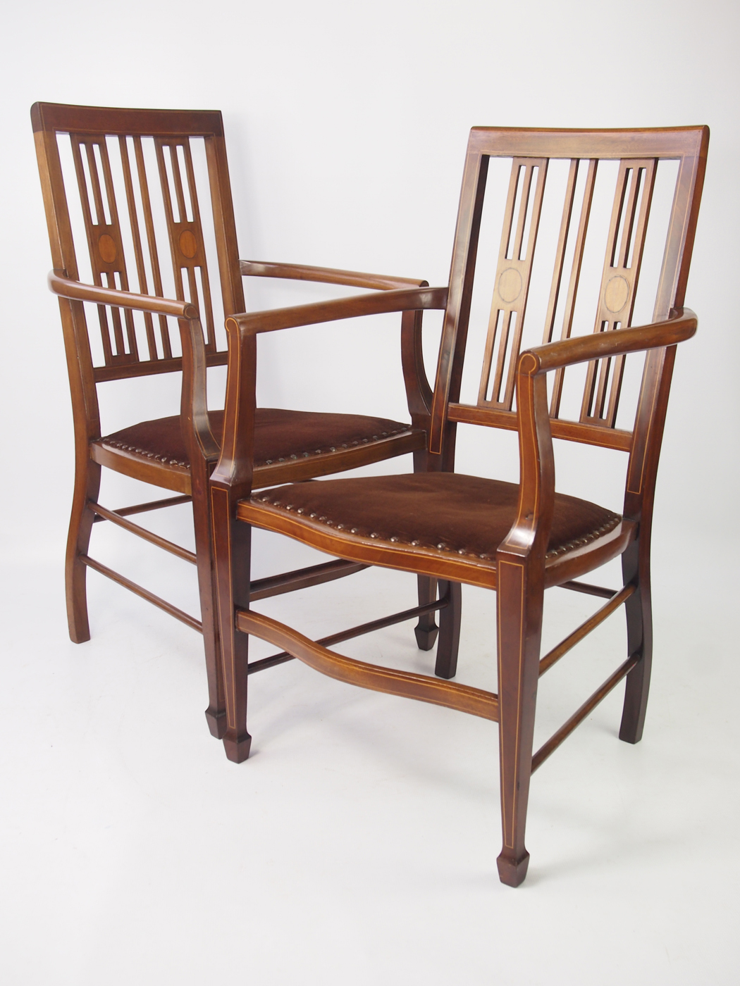 Pair of Edwardian Inlaid Mahogany Open Armchairs