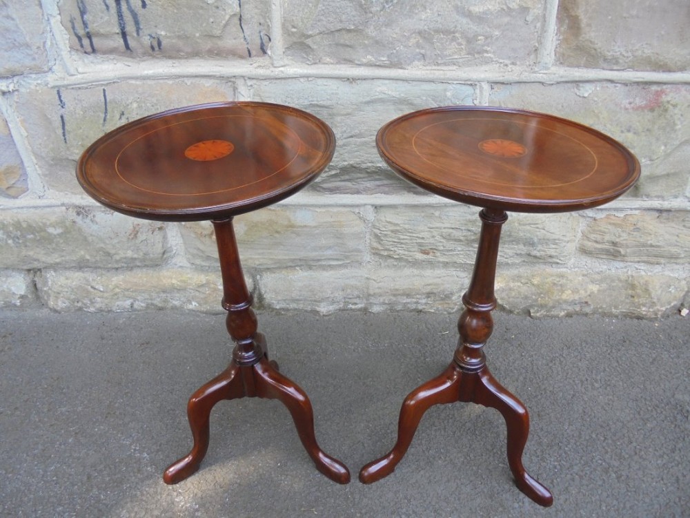 Pair of Edwardian Inlaid Mahogany Tripod Wine Tables