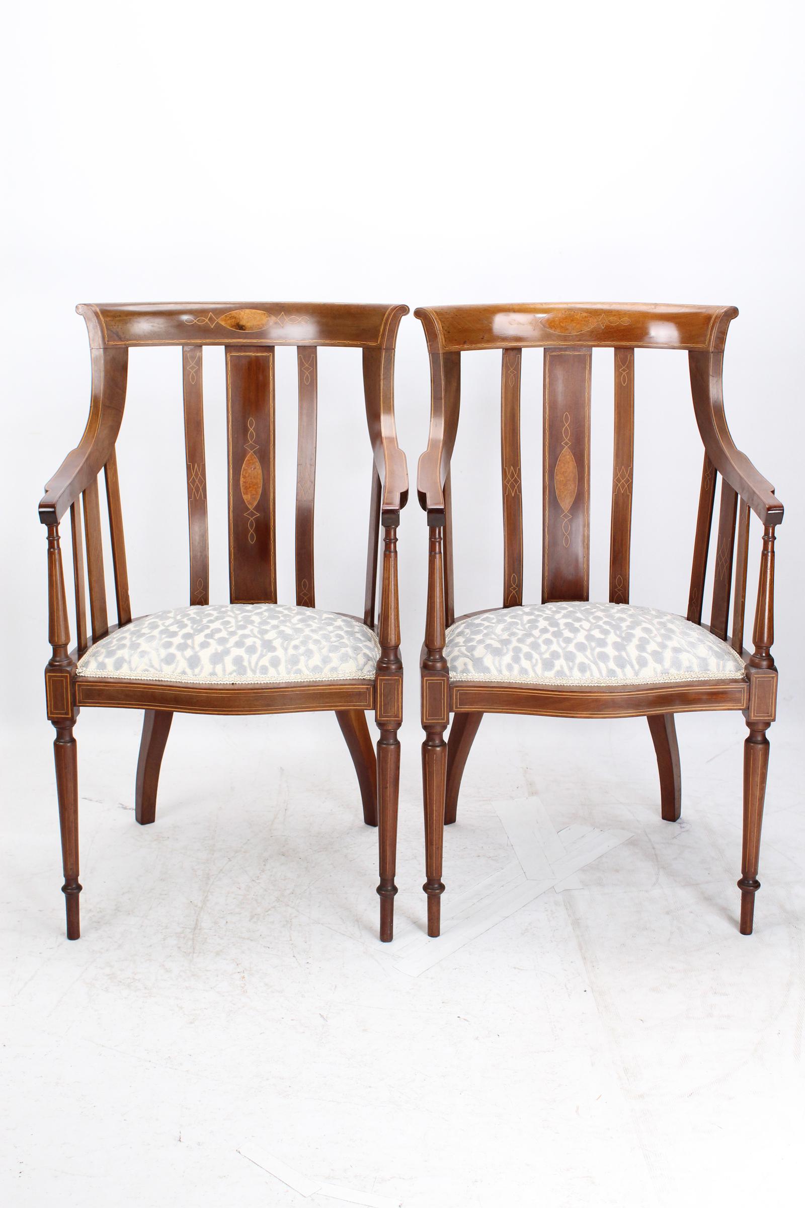 Pair of Edwardian Inlaid Mahogany Tub Chairs