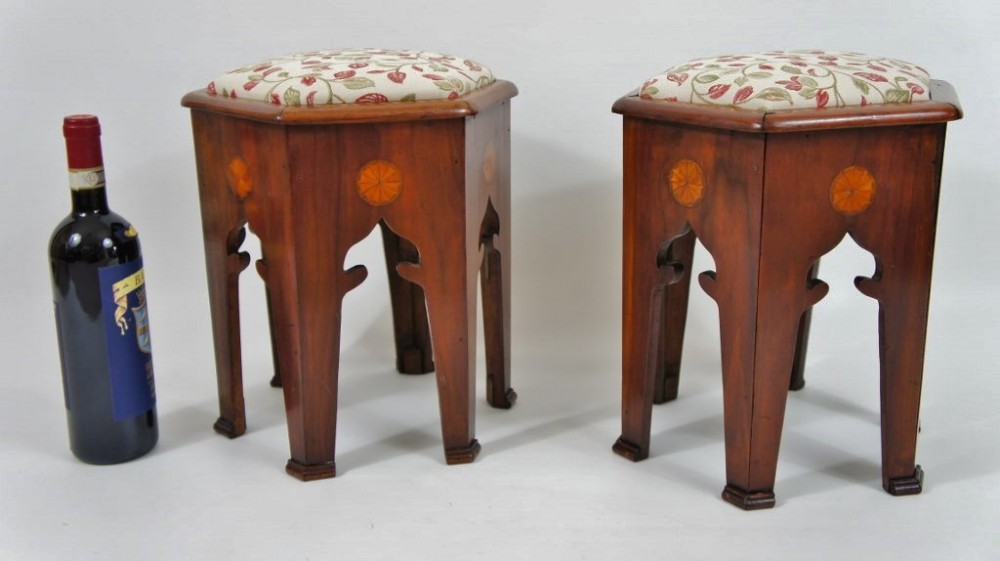 Pair of Edwardian Inlaid Mahogany Upholstered Footstools