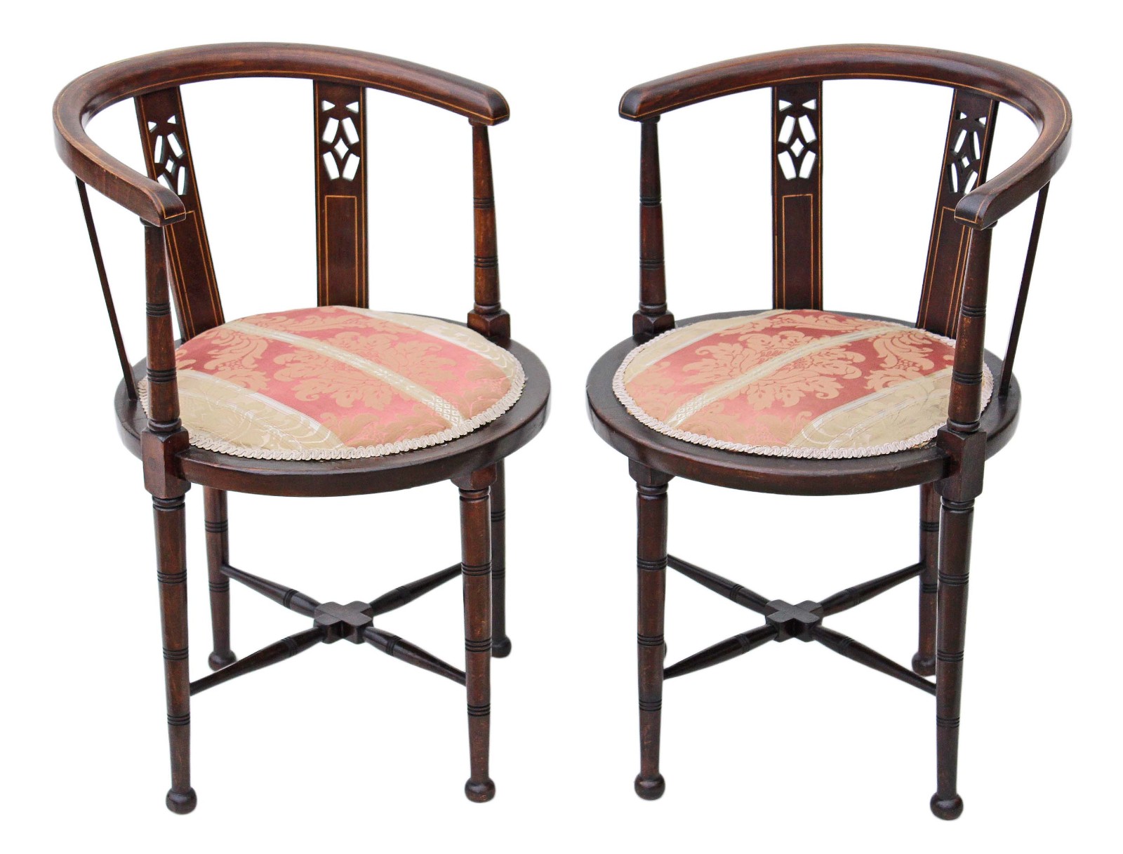 Pair of Edwardian Mahogany Corner Armchairs / Bedroom Chair / Tub Chair / Side Chair