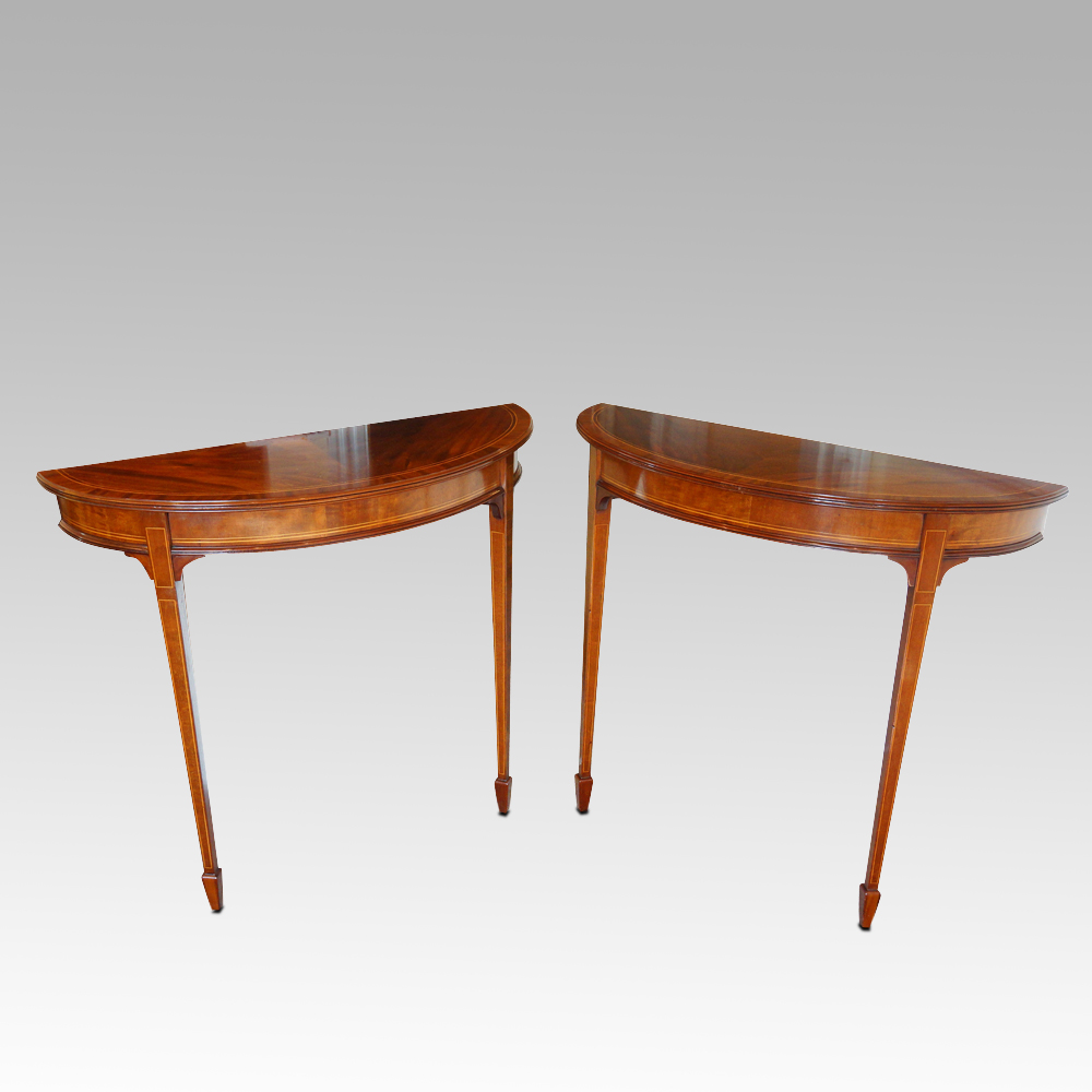 Pair of Edwardian Mahogany Demi Lune Tables (1 of 1)
