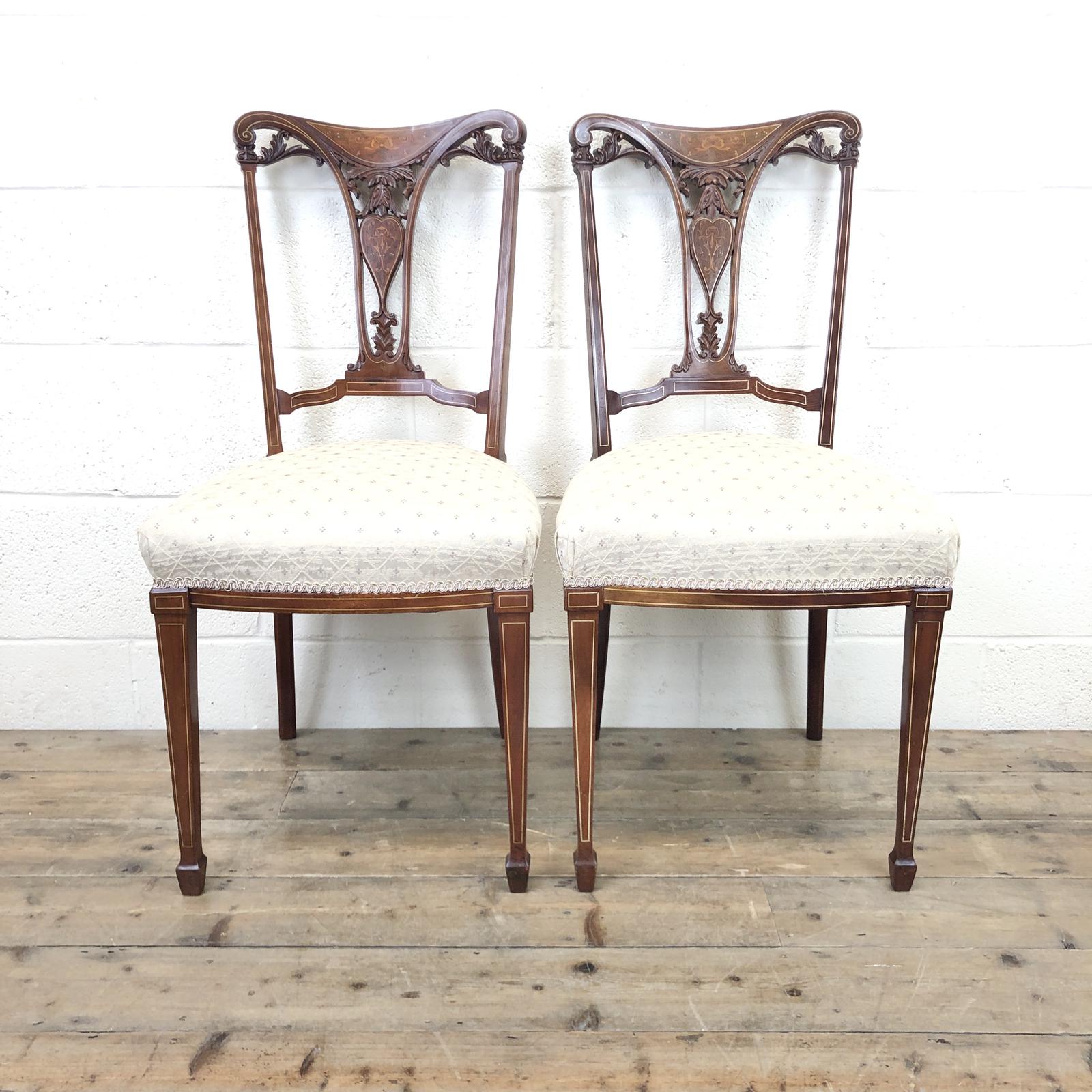 Pair of Edwardian Mahogany Dining Chairs with Inlay