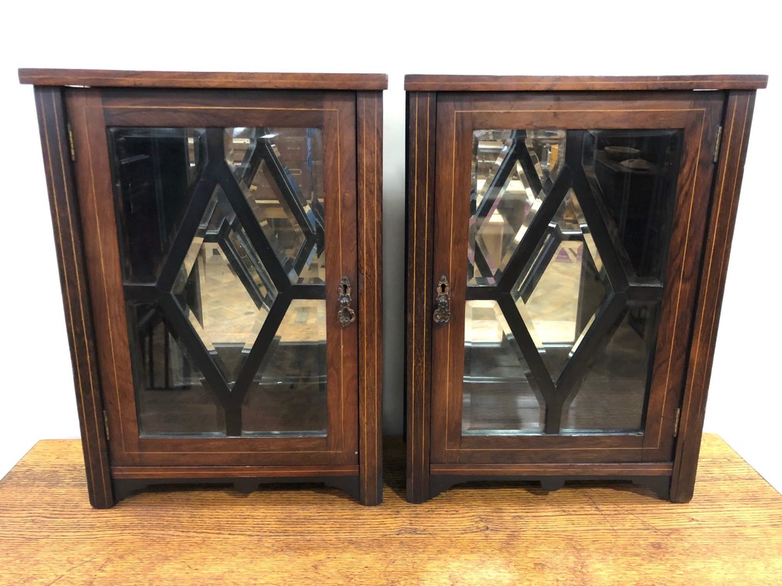 Pair of Edwardian Mahogany Glazed Cabinets with Mirrored Backs (1 of 1)