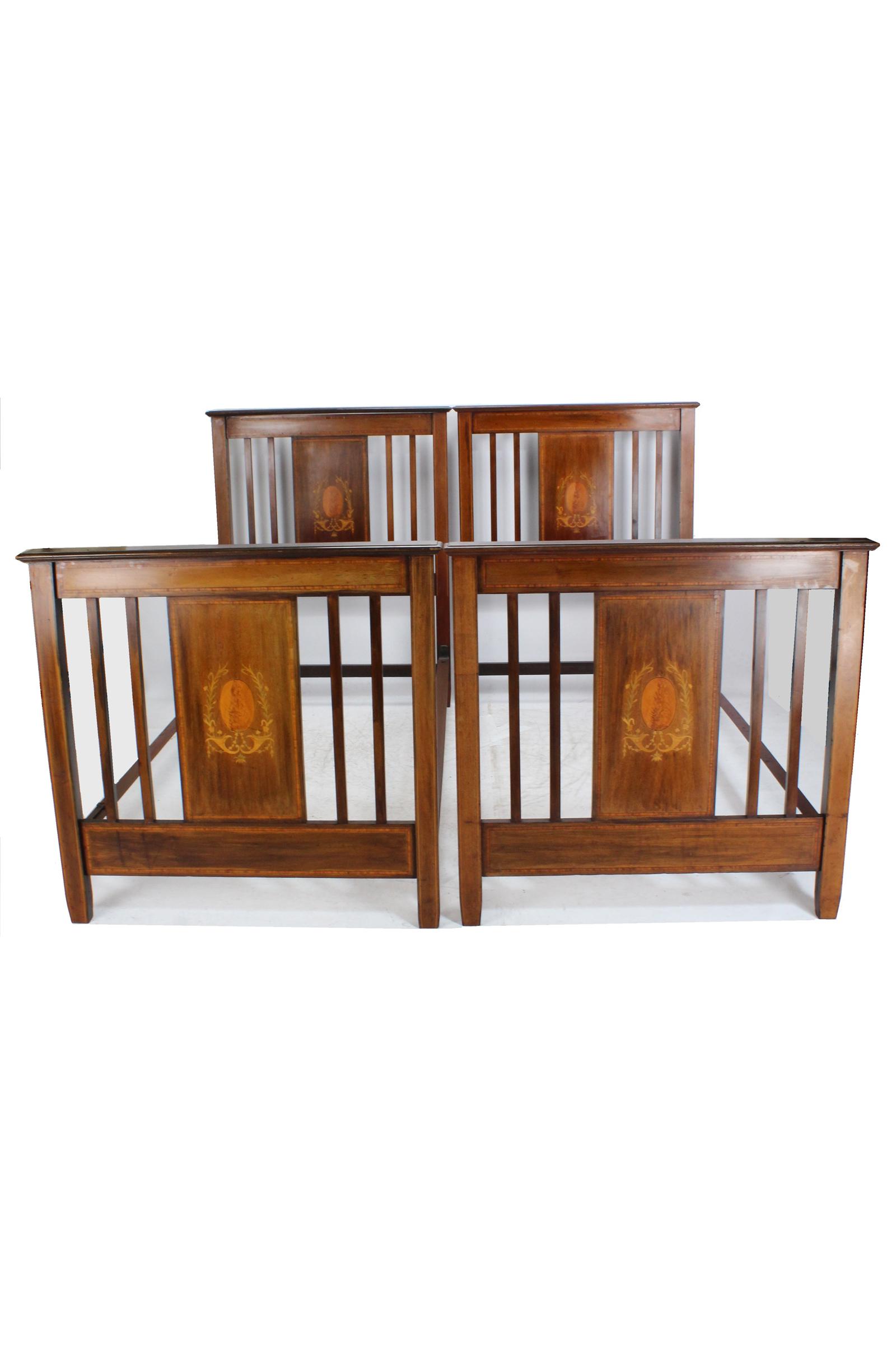 Pair of Edwardian Mahogany & Inlaid Single Beds