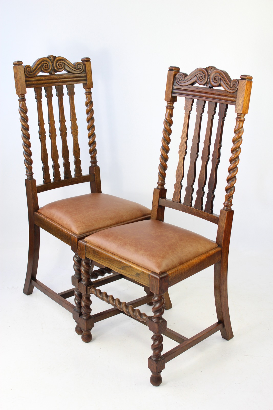 Pair of Edwardian Oak Barley Twist Chairs (1 of 1)