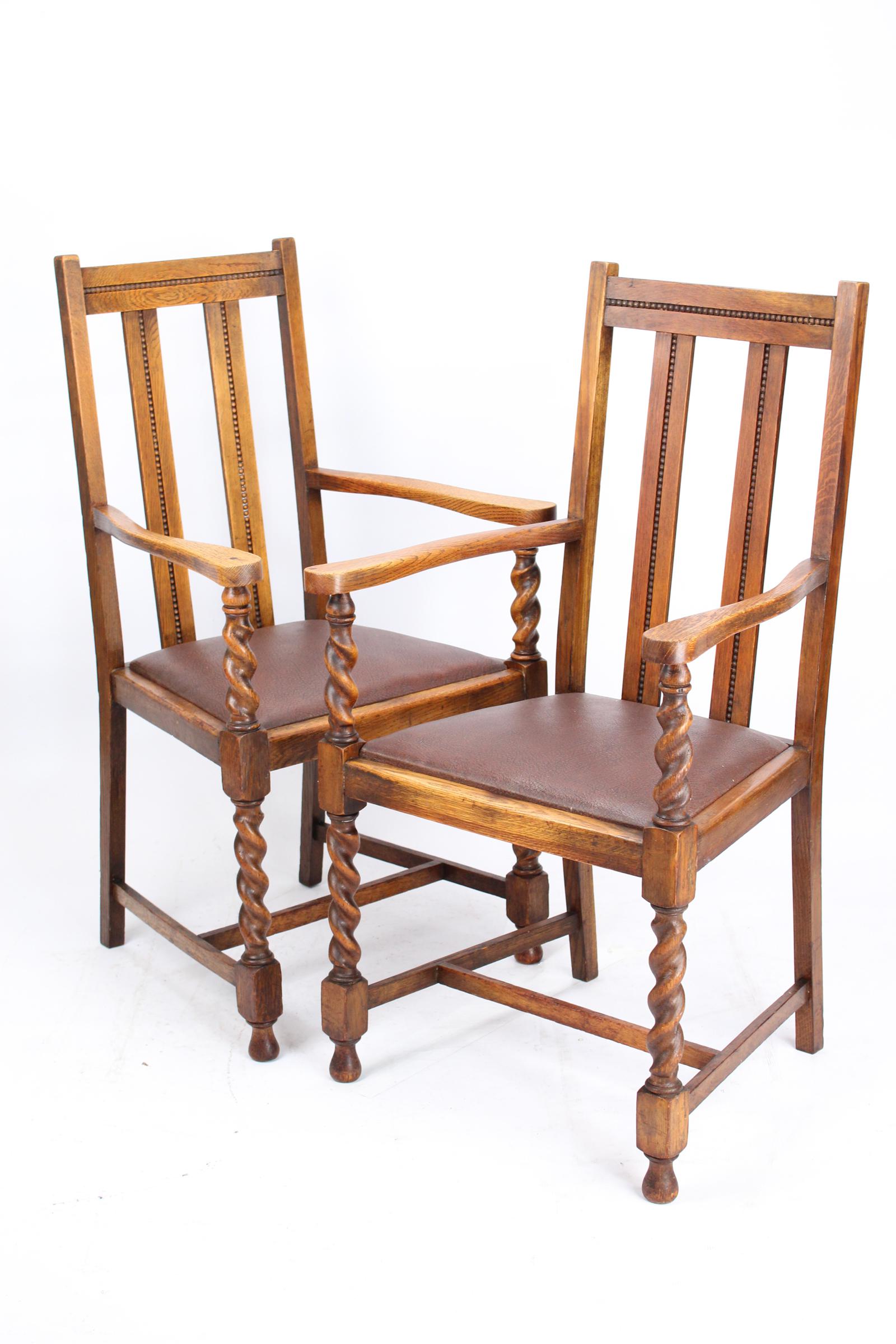 Pair of Edwardian Oak Carver Chairs / Open Armchairs