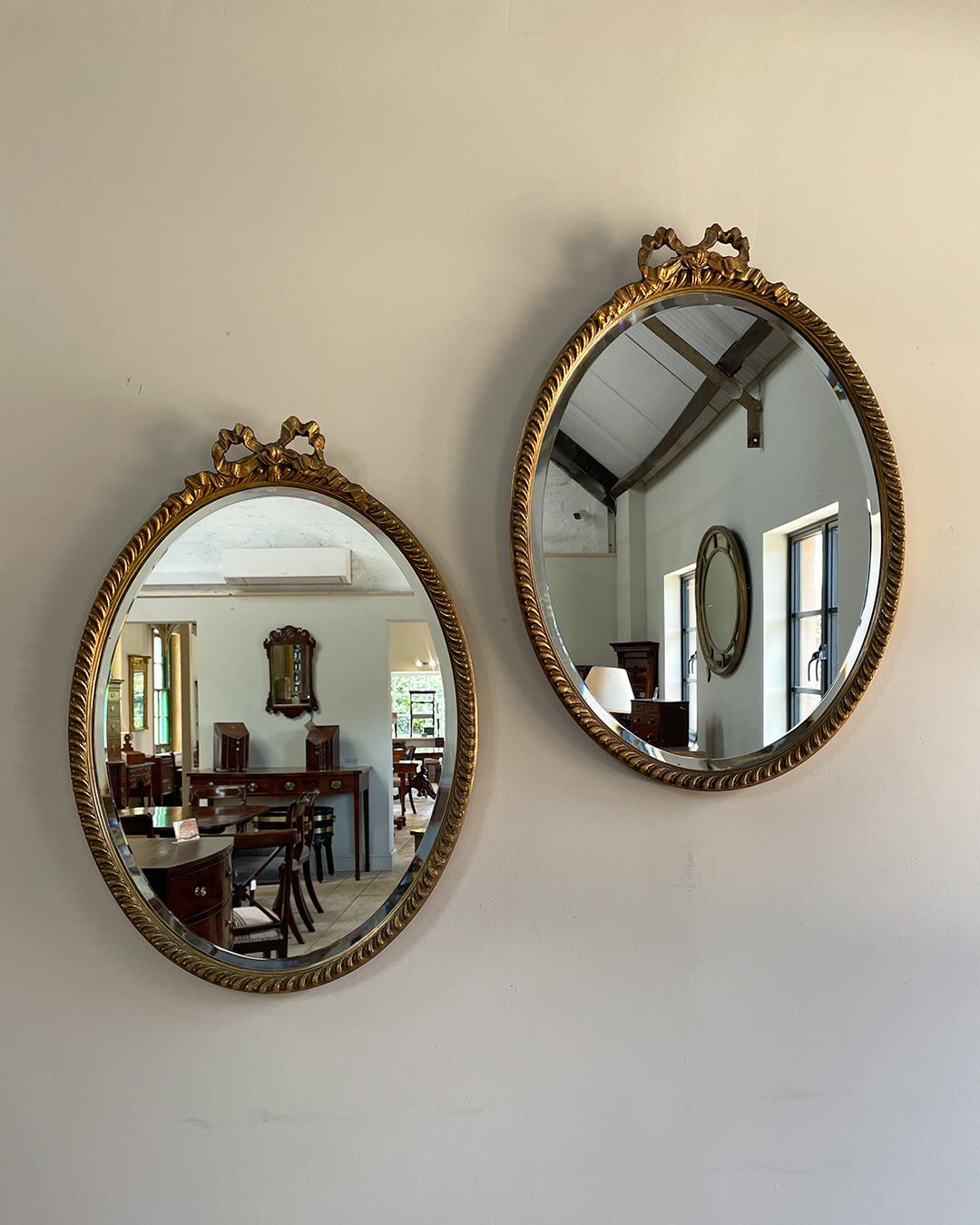 Pair of Edwardian Oval Gilt Mirrors