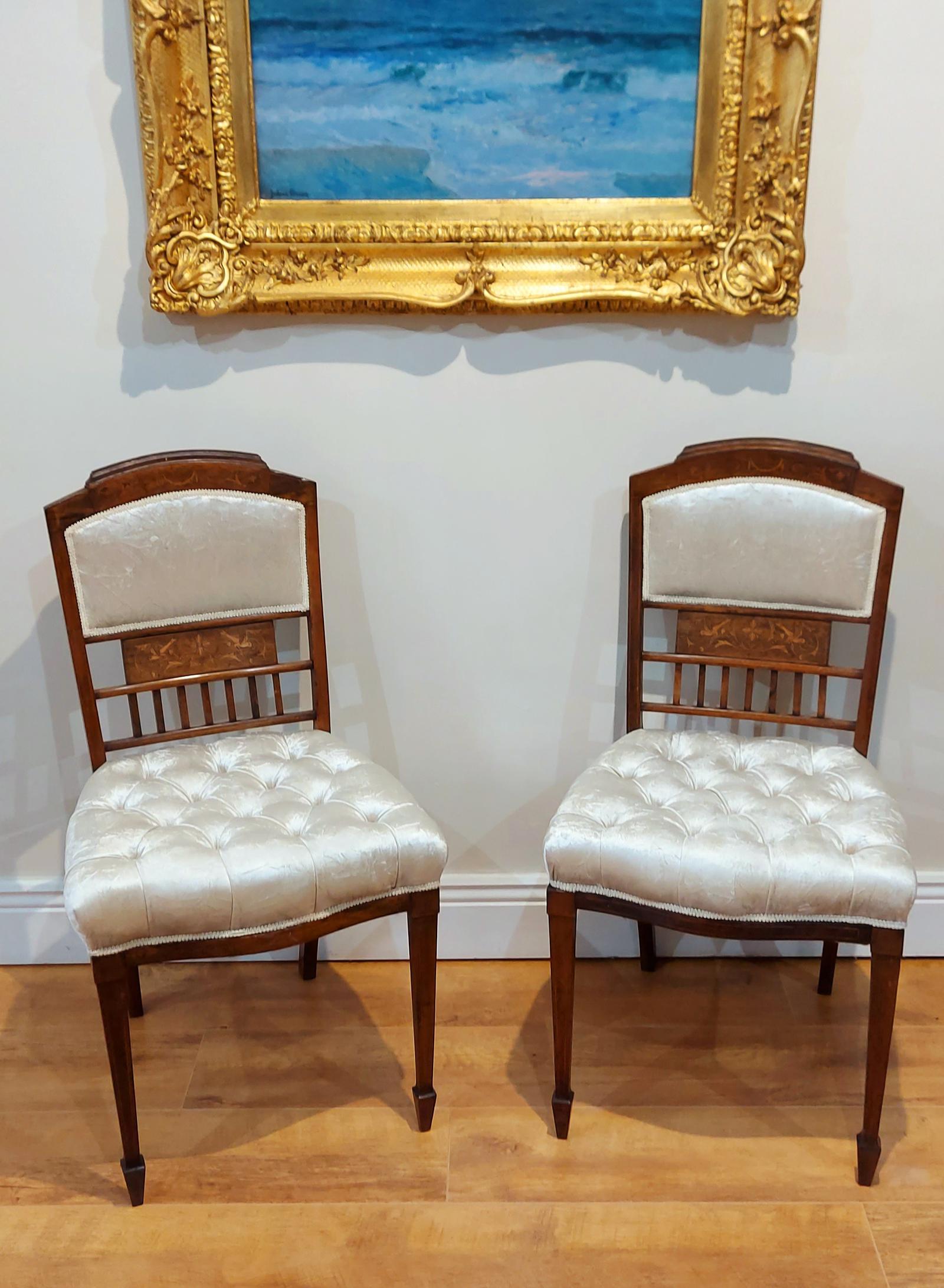 Pair of Edwardian Santos Rosewood Inlaid Deep Buttoned Chairs