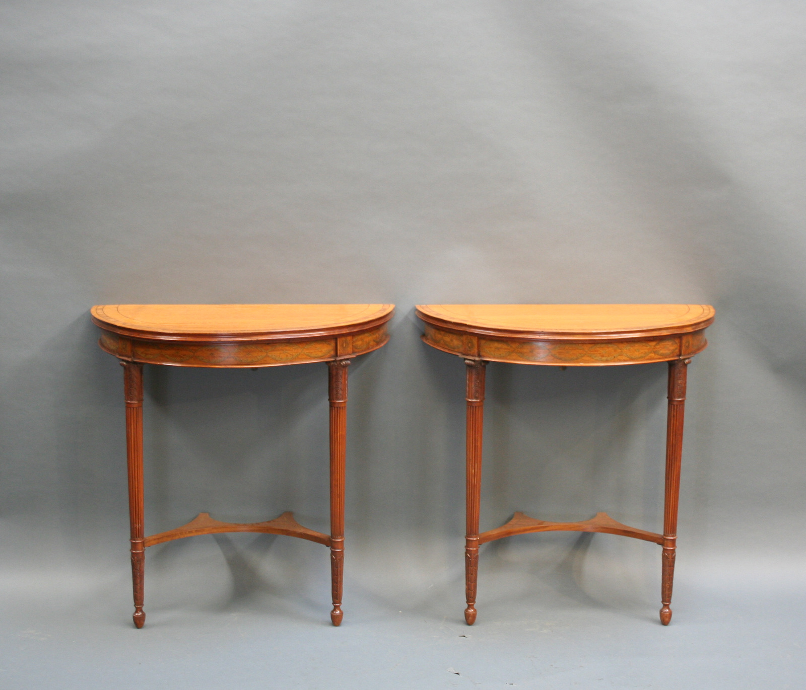 Pair of Edwardian Satinwood Console Pier Tables (1 of 1)