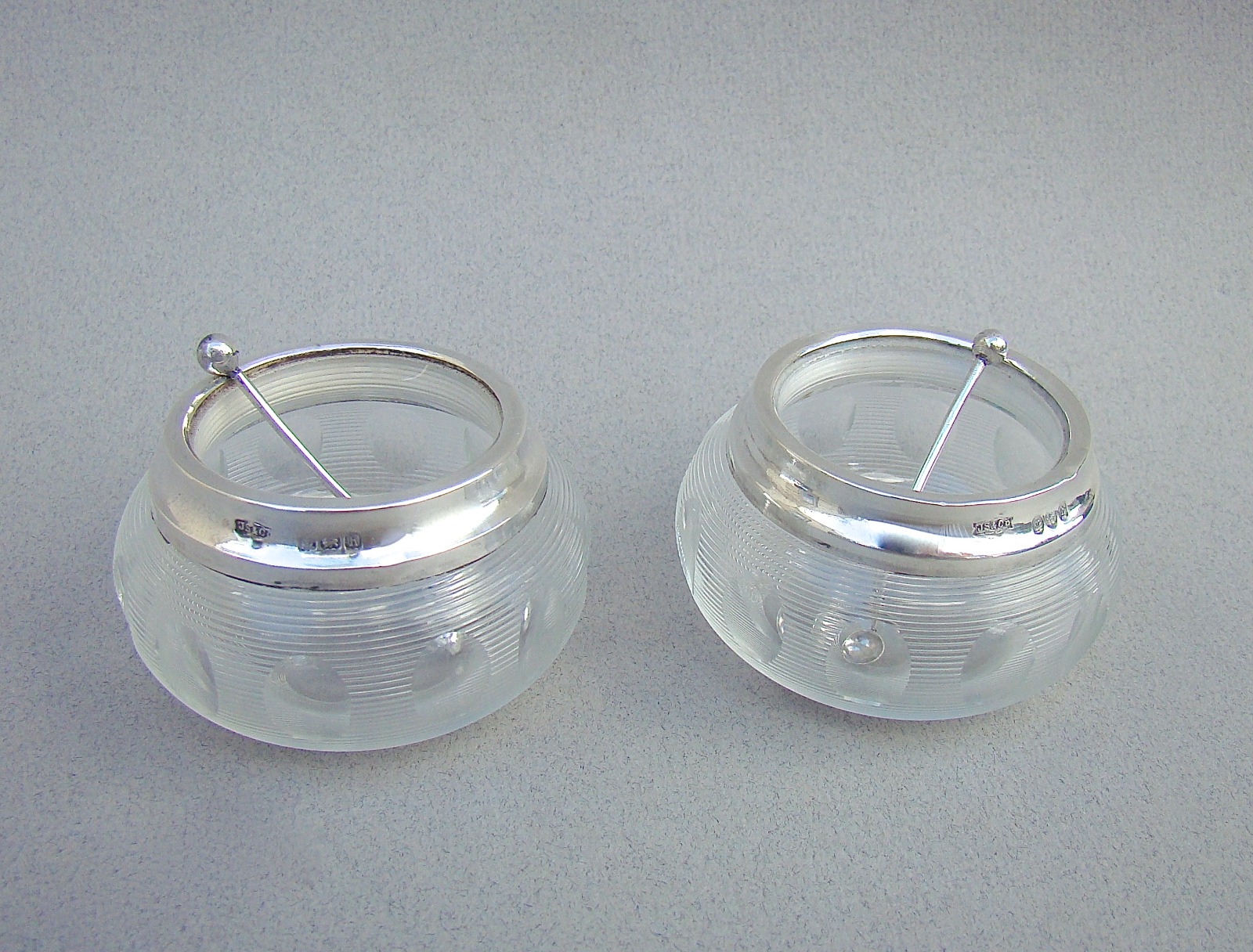 Pair of Edwardian Silver and Ribbed Glass Salts by John Grinsell, Birmingham 1906