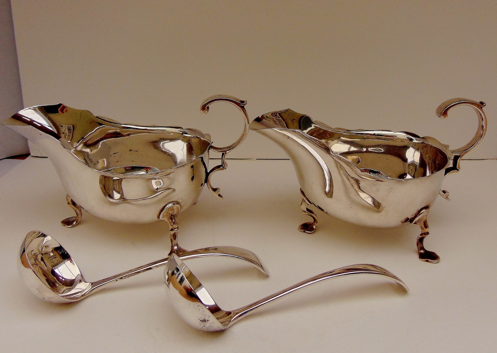 Pair of Edwardian Silver Sauce Boats & Matching Ladles