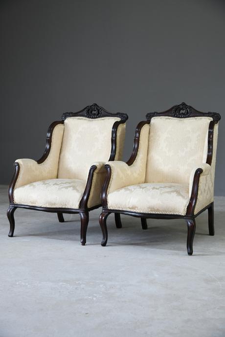 Pair of Edwardian Upholstered Armchairs (1 of 12)