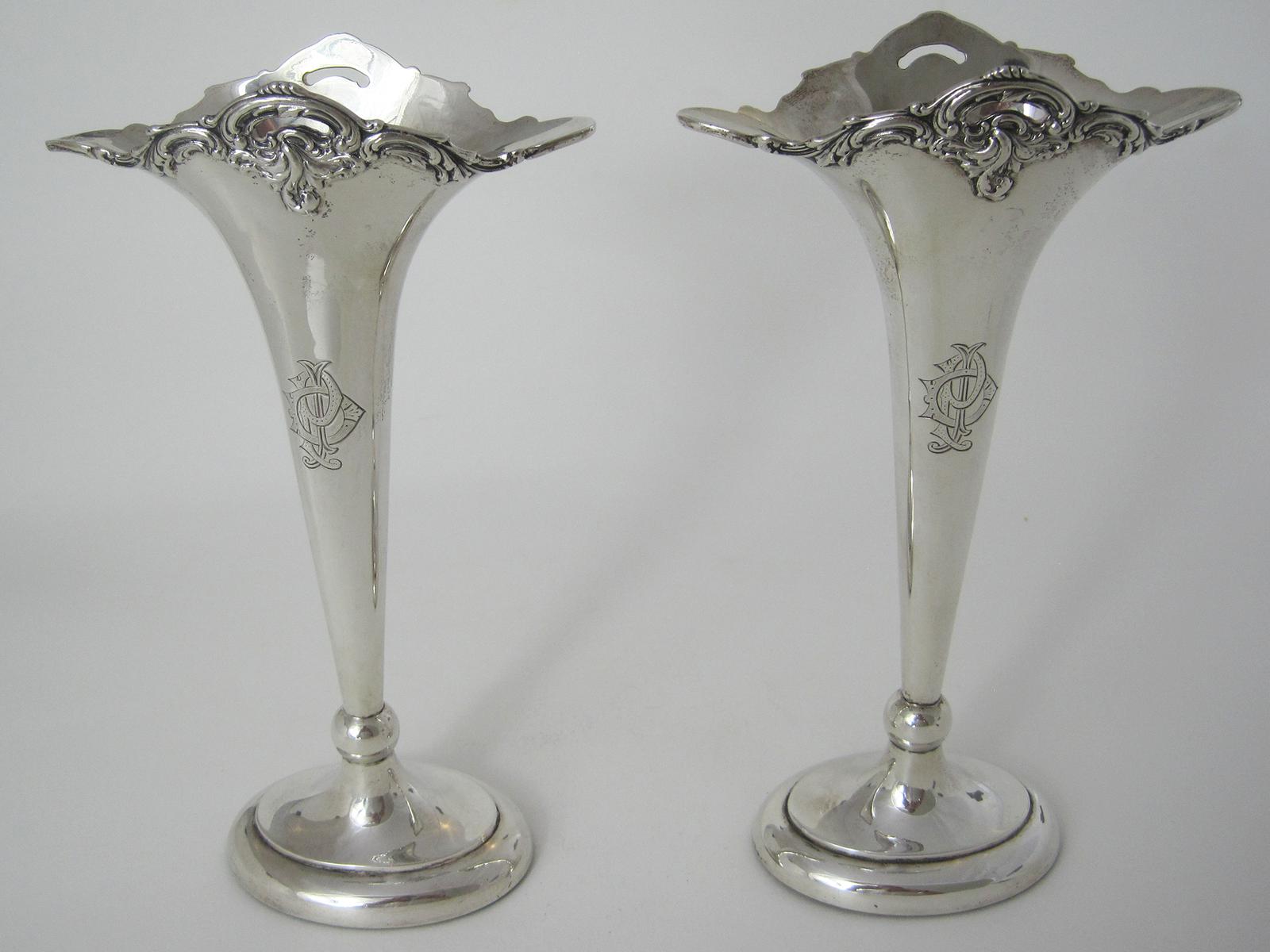 Pair of Elegant Good Quality Edwardian Silver Flower Vases (1 of 7)