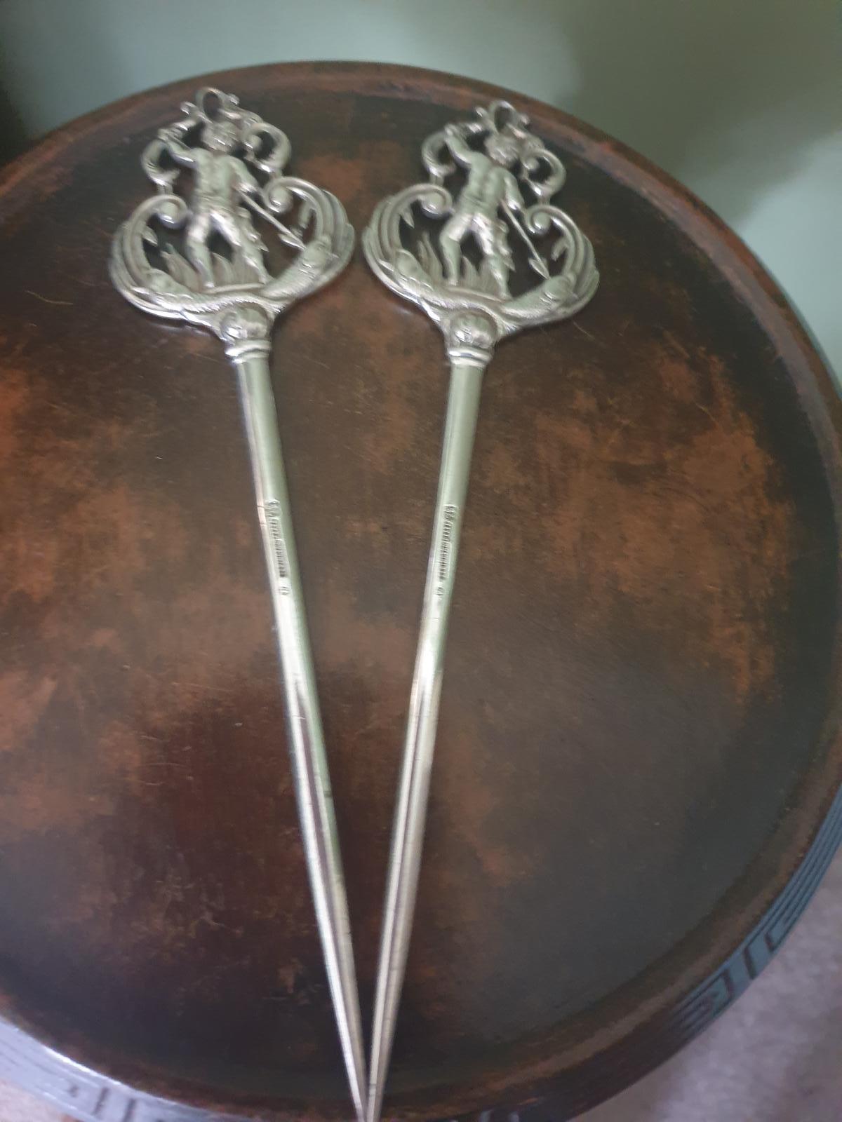 Pair of Elkington Heavy Silver Plated Meat Skewers